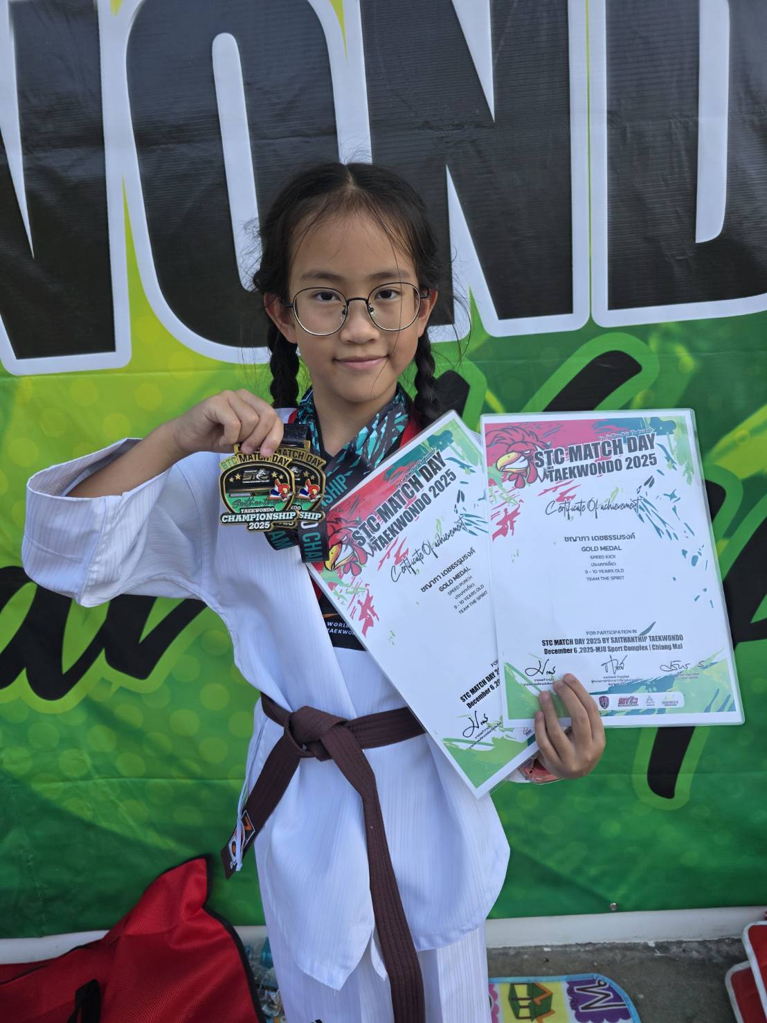 ขอชื่นชมและร่วมแสดงความยินดีกับเด็กหญิงชญาภา เดชธรรมรงค์ นักเรียนชั้นประถมศึกษาปีที่ 3/5 ได้รับรางวัล 2 เหรียญทอง รายการ SPEED KICK (แข่งเตะเร็ว) และ SPEED PUNCH (แข่งชกเร็ว) ประเภทเดี่ยว 9-10 ปี จากการแข่งขัน STC MATCH DAY TAEKWONDO 2025
