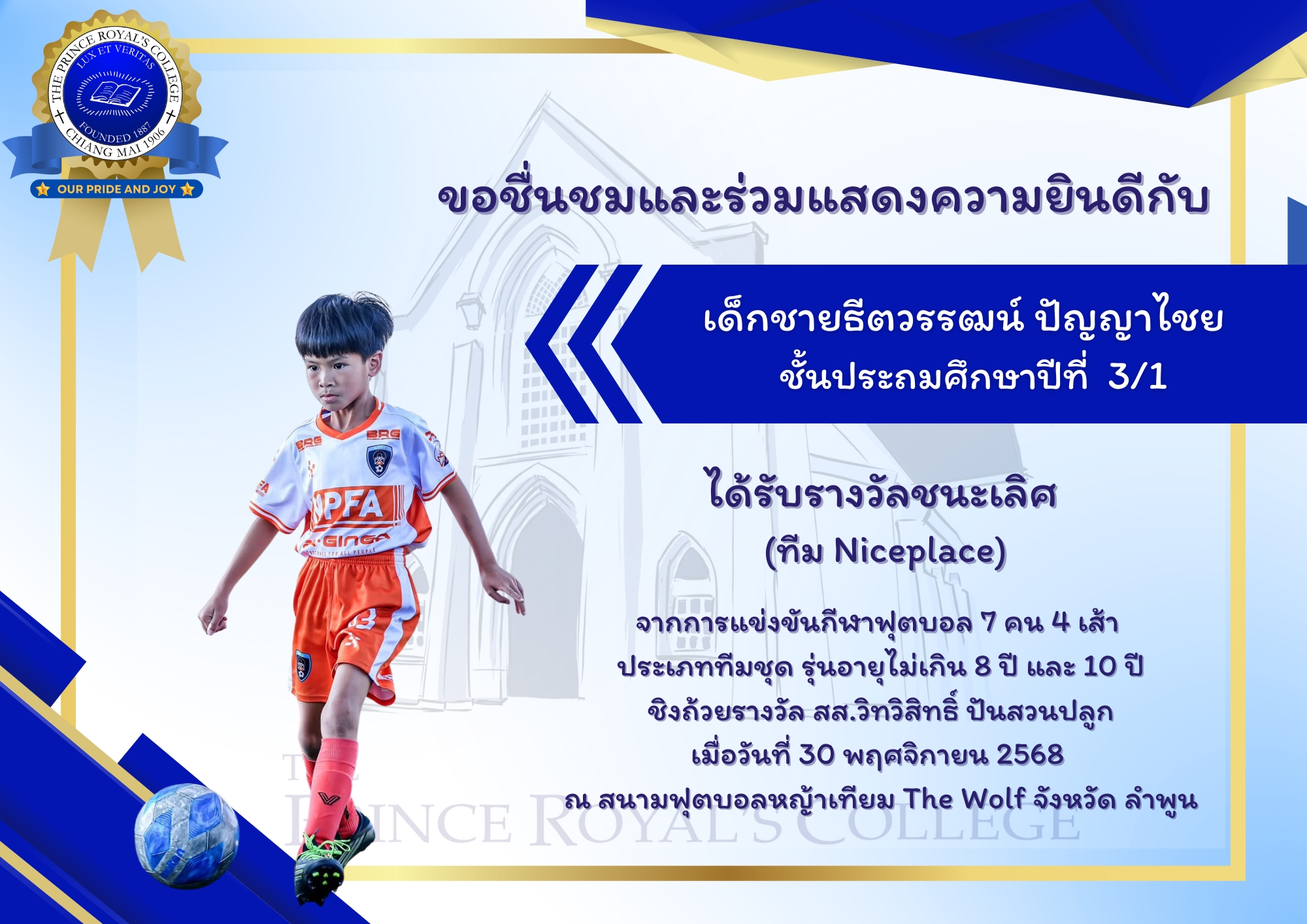 ขอชื่นชมและร่วมแสดงความยินดีกับเด็กชายธีตวรรฒน์ ปัญญาไชย นักเรียนชั้นประถมศึกษาปีที่ 3/1