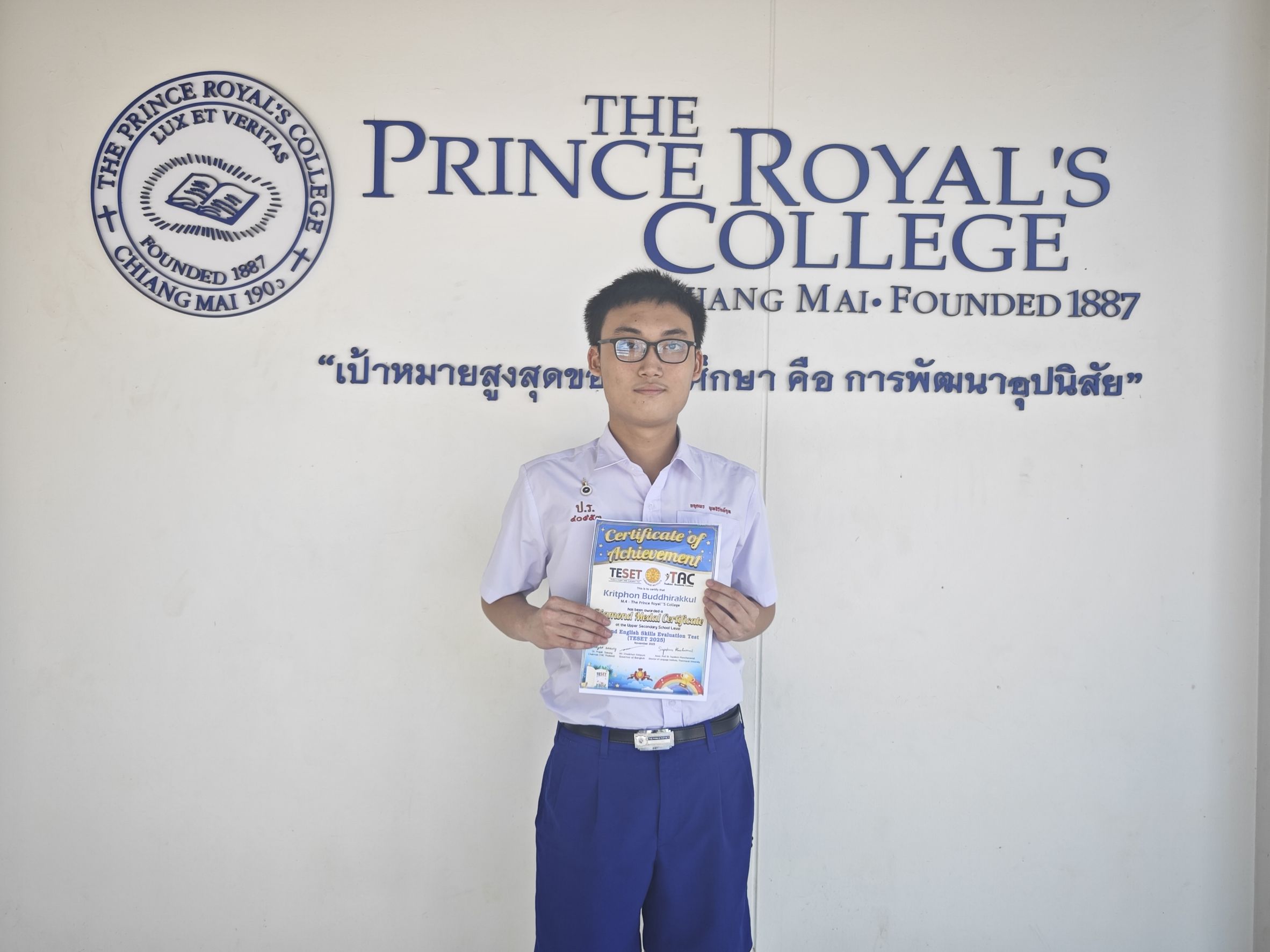 ขอชื่นชมและแสดงความยินดีกับ นายกฤตพร พุทธิรักษ์กุล ม.4/10 ที่ได้รับรางวัล Diamond Medal Certificate จากการร่วมกิจกรรม Thailand English Skills Evaluation Test (TESET 2025) จัดโดย สถาบันภาษา มหาวิทยาลัยธรรมศาสตร์ ณ โรงเรียนหอพระ เมื่อวันที่ 17 สิงหาคม 2568 (ระดับประเทศ)
