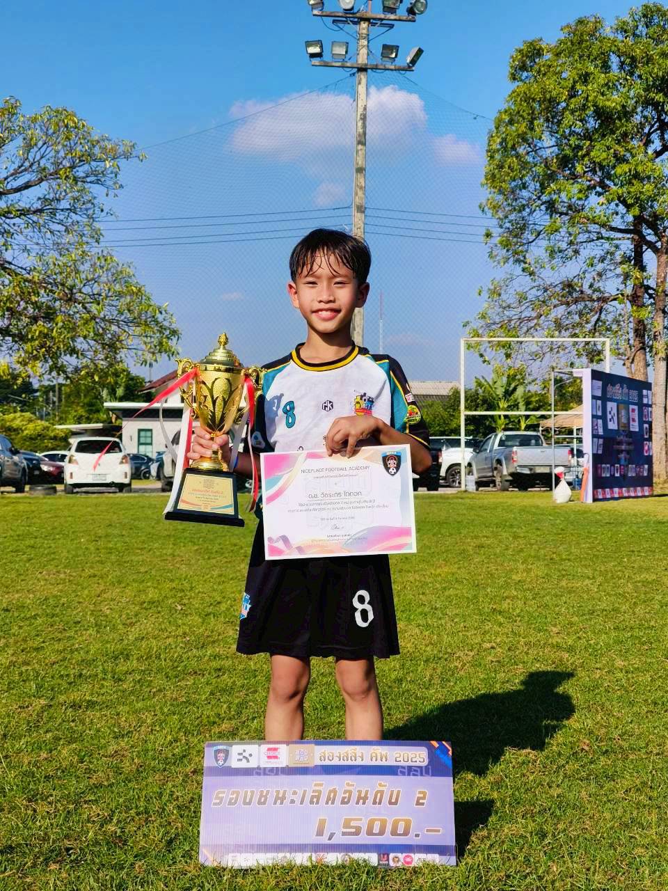 ขอชื่นชมและร่วมแสดงความยินดีกับ เด็กชายวัชระกร โถดอก ชั้นประถมศึกษาปีที่ 3/13 ได้รับรางวัล รองชนะเลิศอันดับ 2 จากรายการที่ไปแข่งขันฟุตบอลสองสลึง คัพ 2025 รุ่น U8