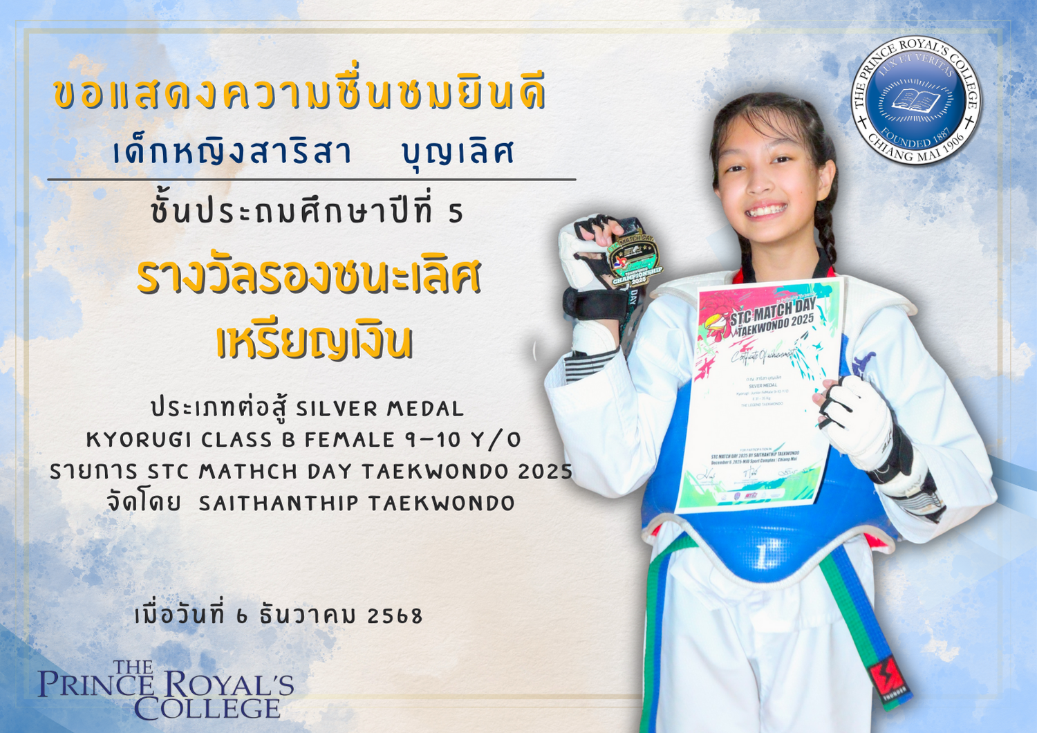ขอแสดงความยินดีกับเด็กหญิงสาริสา บุญเลิศ