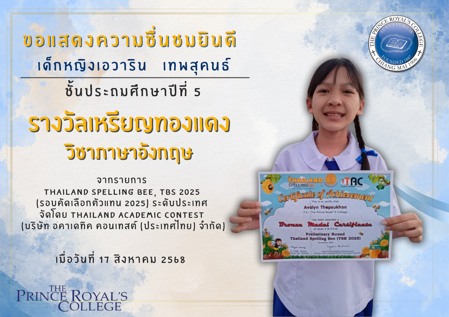 จากรายการ Thailand Spelling Bee, TBS 2025 (รอบคัดเลือกตัวแทน 2025) ระดับประเทศ
