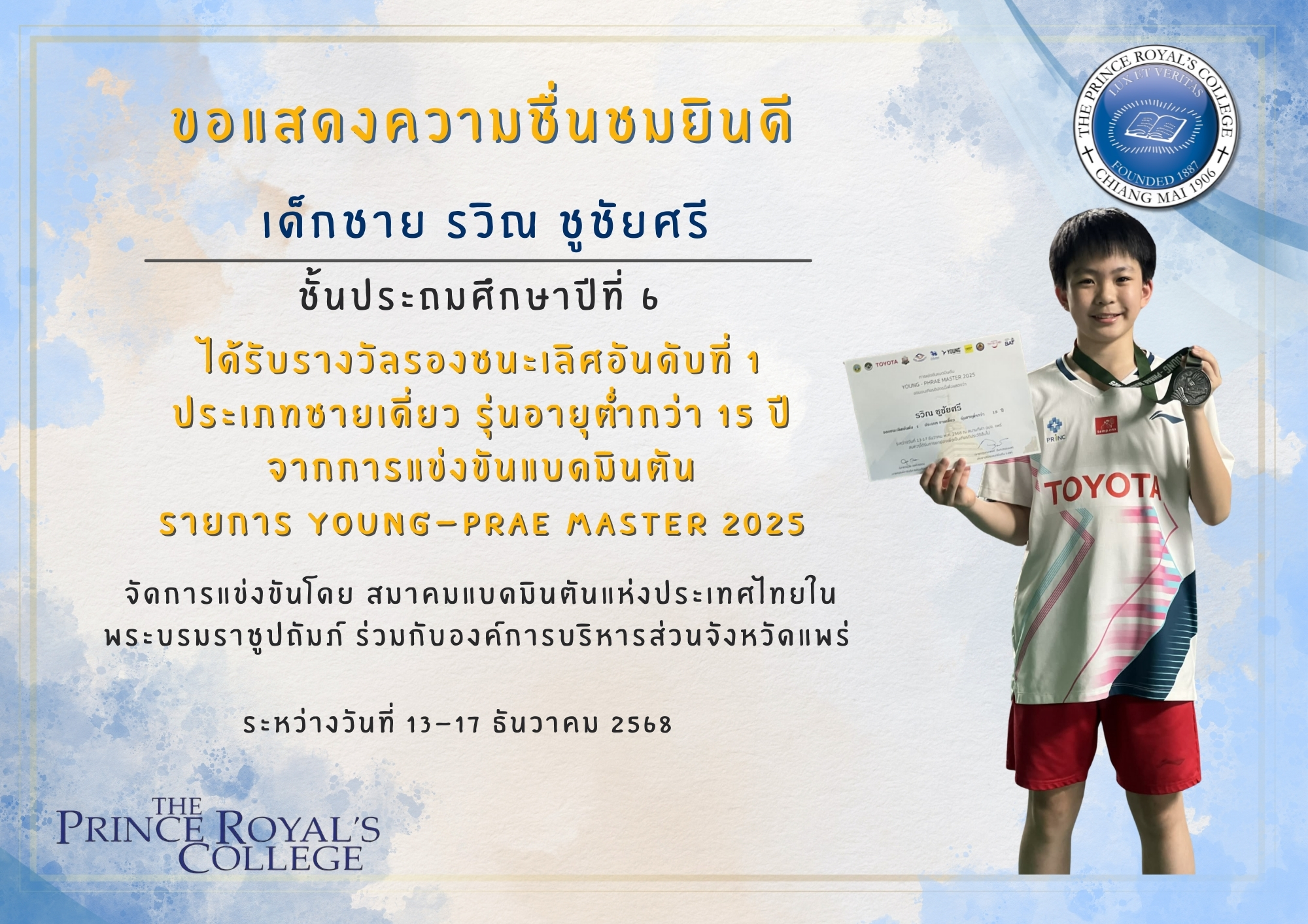 จากการแข่งขันแบดมินตันรายการ Young-Prae Master 2025 ระดับประเทศ