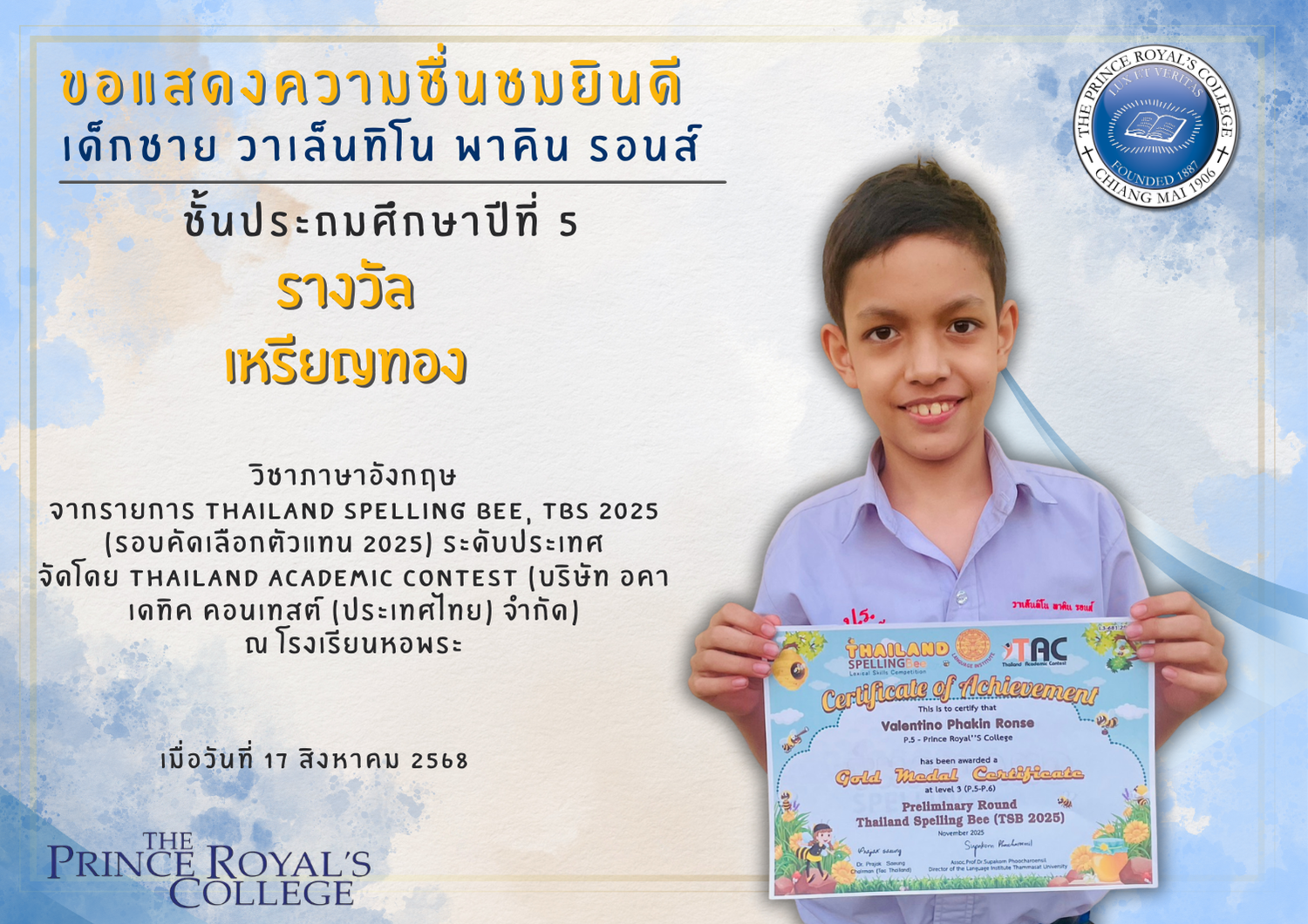 จากรายการ Thailand Spelling Bee, TBS 2025 (รอบคัดเลือกตัวแทน 2025) ระดับประเทศ