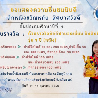 ขอแสดงความยินดีกับเด็กหญิงขวัญหทัย สัตยาสวัสดิ์ นักเรียนระดับชั้นประถมศึกษาปีที่ 4