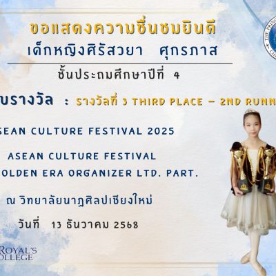 ขอแสดงความยินดีกับเด็กหญิงศิรัสวยา ศุกรภาส นักเรียนระดับชั้นประถมศึกษาปีที่ 4