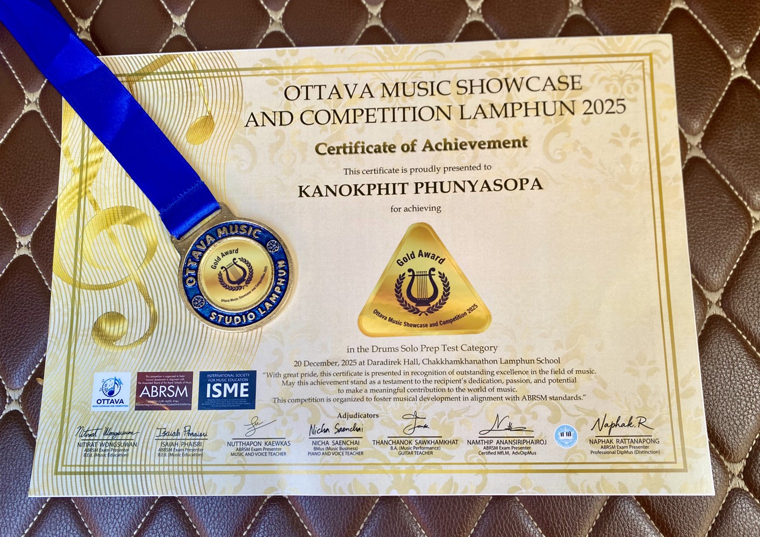 💠Gold Award in Drums Solo Prep Test Category