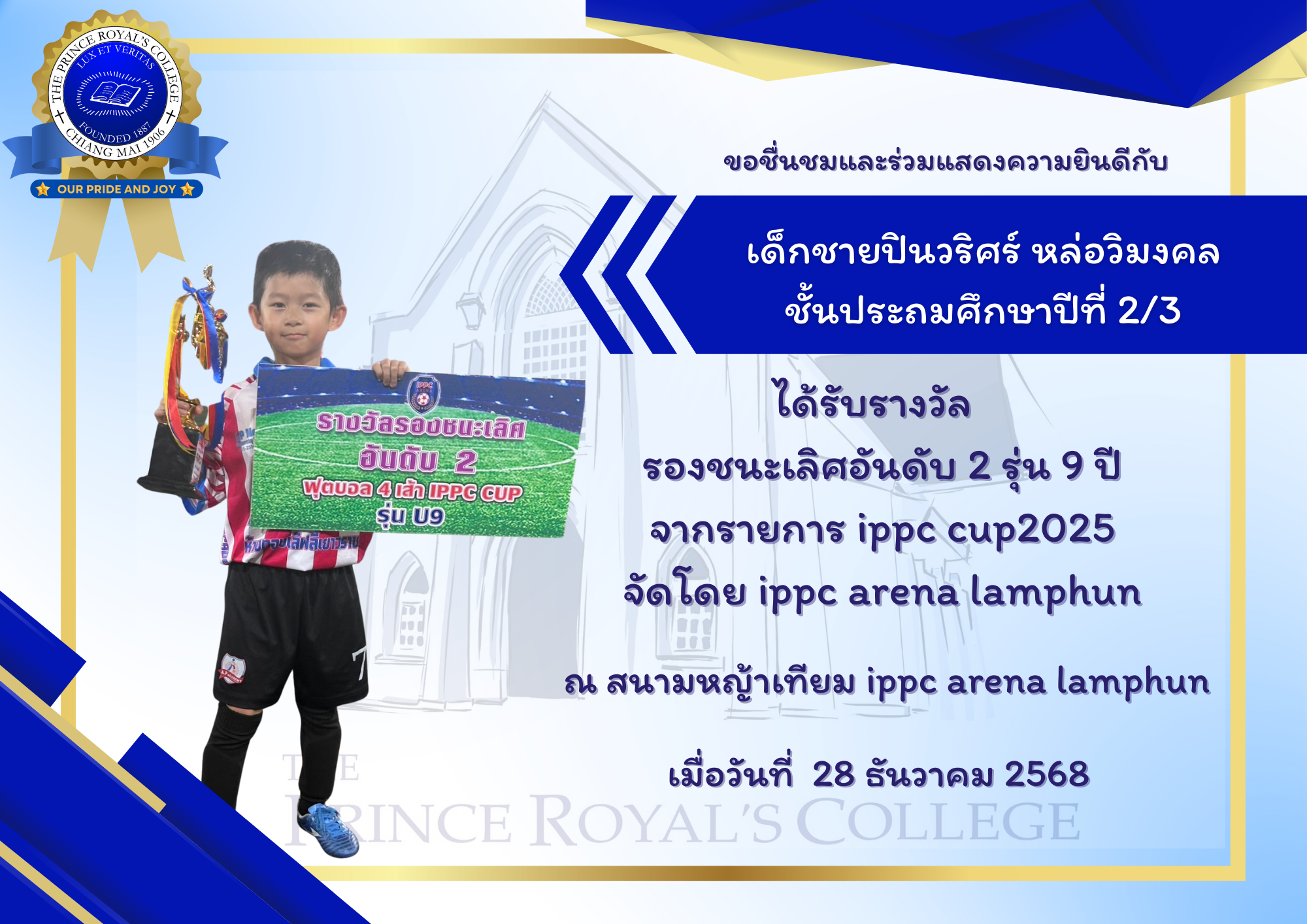 ได้รับรางวัล รองชนะเลิศอันดับ 2 รุ่น 9 ปี จากรายการ ippc cup2025 จัดโดย ippc arena lamphun