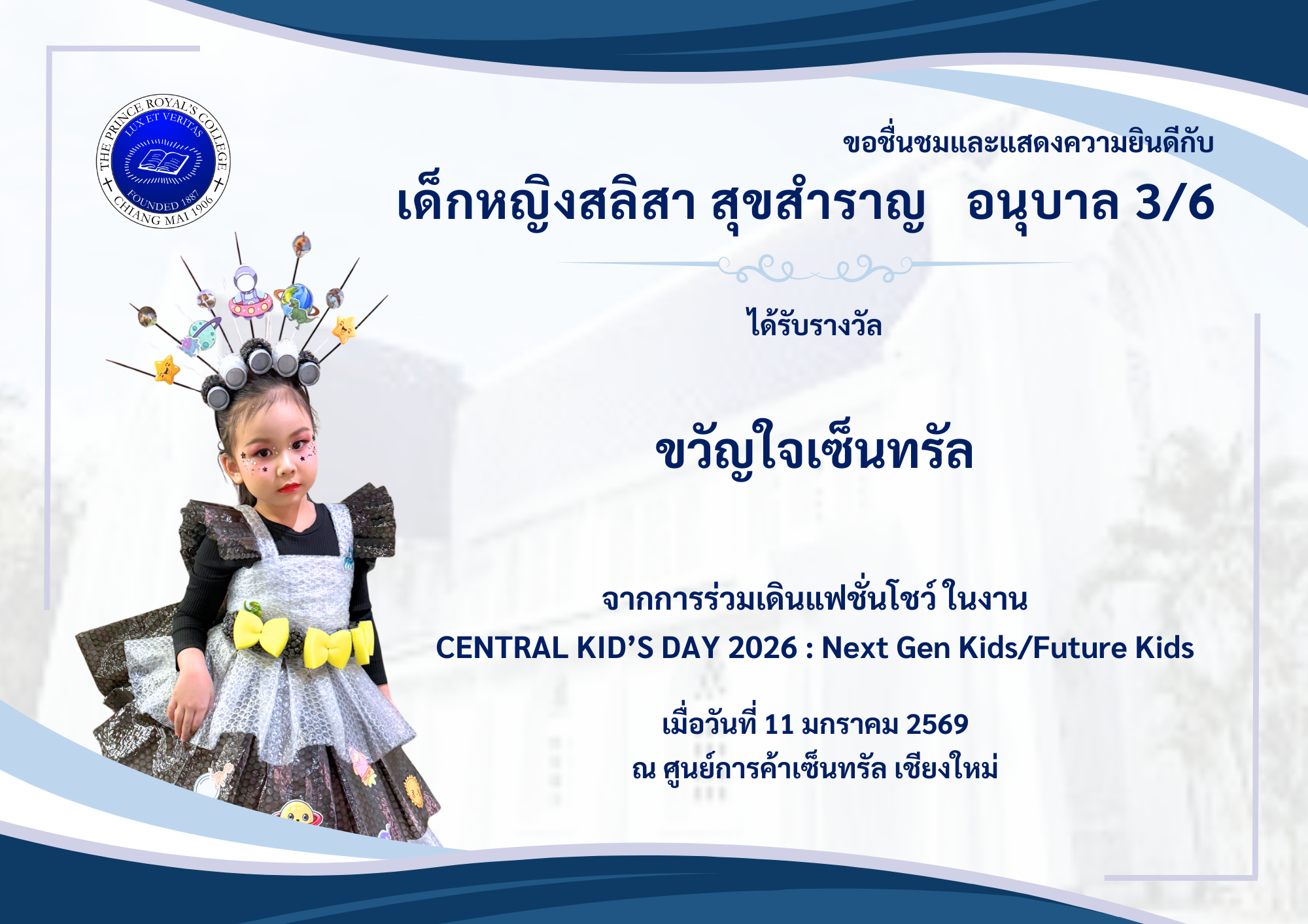 จากการร่วมเดินแฟชั่นโชว์ ในงาน CENTRAL KID’S DAY 2026 : Next Gen Kids/Future Kids