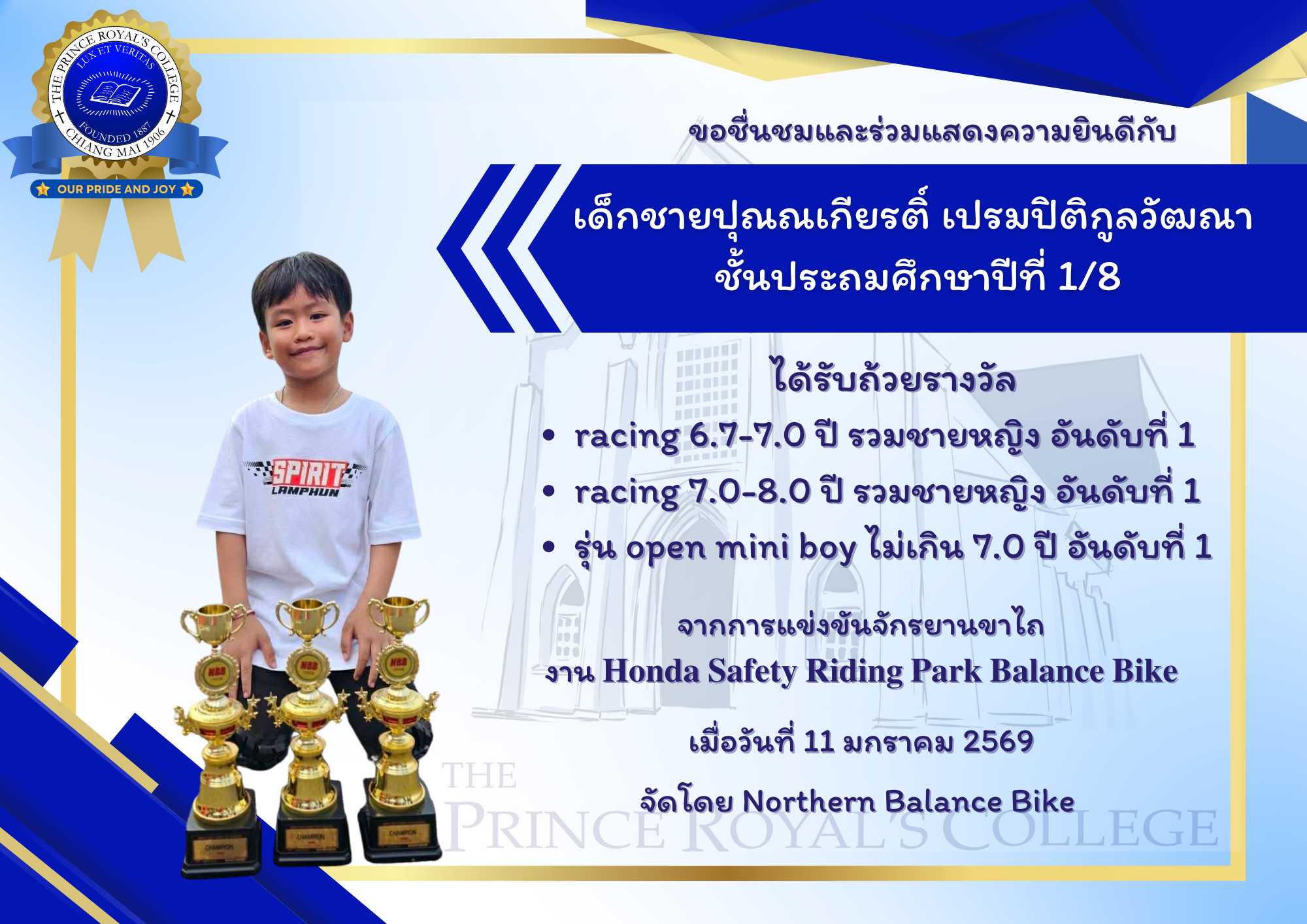 ขอชื่นชมและร่วมแสดงความยินดีกับ เด็กชายปุณณเกียรติ์ เปรมปิติกูลวัฒณา ชั้นประถมศึกษาปีที่ 1/8