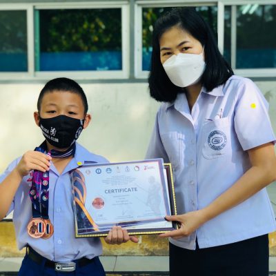 เด็กชายกรณ์ทิพัชร จำเริญ ชั้น ป. 3/10 รางวัลเหรียญทองแดง พุ่มเซ่ เดี่ยวชาย 9-10 ปี Green และ เหรียญทองแดง ยุวชน อายุ 9-10 ปี Class BM -36 kg การแข่งขันเทควันโด องค์การบริหารส่วนจังหวัดอุตรดิตถ์ ชิงถ้วยพระราชทานสมเด็จพระกนิษฐาธิราชเจ้า กรมสมเด็จพระเทพรัตนราชสุดาฯสยามบรมราชกุมารี ครั้งที่ 1 ประจำปีงบประมาณ พ.ศ.2565 ณ สนามกีฬากลางเทศบาลเมืองอุตรดิตถ์ จังหวัดอุตรดิตถ์ ระหว่างวันที่ 28 – 29 พฤษภาคม 2565 จัดโดยองค์การบริหารส่วนจังหวัดอุตรดิตถ์ ระดับประเทศ