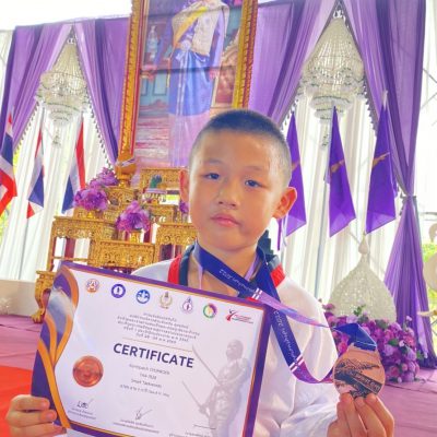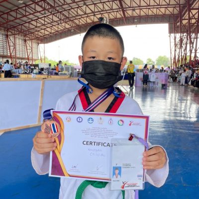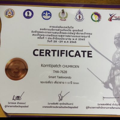 เด็กชายกรณ์ทิพัชร จำเริญ ชั้น ป. 3/10 รางวัลเหรียญทองแดง พุ่มเซ่ เดี่ยวชาย 9-10 ปี Green และ เหรียญทองแดง ยุวชน อายุ 9-10 ปี Class BM -36 kg การแข่งขันเทควันโด องค์การบริหารส่วนจังหวัดอุตรดิตถ์ ชิงถ้วยพระราชทานสมเด็จพระกนิษฐาธิราชเจ้า กรมสมเด็จพระเทพรัตนราชสุดาฯสยามบรมราชกุมารี ครั้งที่ 1 ประจำปีงบประมาณ พ.ศ.2565 ณ สนามกีฬากลางเทศบาลเมืองอุตรดิตถ์ จังหวัดอุตรดิตถ์ ระหว่างวันที่ 28 – 29 พฤษภาคม 2565 จัดโดยองค์การบริหารส่วนจังหวัดอุตรดิตถ์ ระดับประเทศ