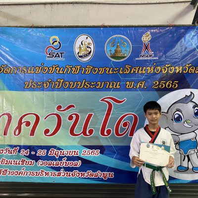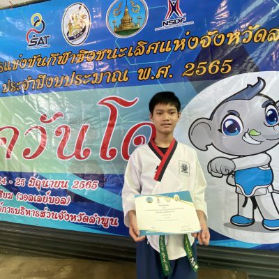 ขอแสดงความยินดีกับ เด็กชายธิติพัทธ์ ไพรศรี นักเรียนชั้นมัธยมศึกษาปีที่ 2 รางวัลชนะเลิศ การแข่งขันกีฬาเทควันโด ประเภทพุมเซ่ รุ่นอายุ 13 -14 ปี ในการจัดการแข่งขันกีฬาชิงชนะเลิศจังหวัดลำพูน ปี 2565 ระหว่างวันที่ 24-25 มิถุนายน 2565 ณ สนามกีฬาองค์การบริหารส่วนจังหวัดลำพูน