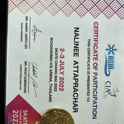 รางวัล Drama spot Fs.1 7-8 year รางวัลที่ 1 First Place และ Rhythmic Hoop Fs.1 – 3 7 – 8 year รางวัลที่ 2 Second Place รายการแข่งขัน SKATE CHIANGMAI 2022