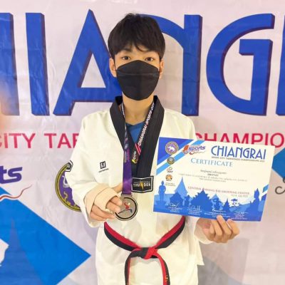 ขอแสดงความยินดีกับ เด็กชายพิชญ์ชยุตม์ เหล็กบุญเพชร นักเรียนชั้นมัธยมศึกษาปีที่ 2 ได้รับรางวัลรองชนะเลิศอันดับ 2 (เหรียญทองแดง) ในการแข่งขันเทควันโด รุ่นอายุ 12 – 14 ปี ชาย (รุ่นC. น้ำหนัก 37 – 41 กก.) รายการCHIANGRAI SPORT CITY TAEKWONDO CHAMPOINSHIPS 2022 ระหว่างวันที่ 13 – 14 กรกฎาคม 2565 ณ Central Chiang rai shopping center จัดโดย สำนักงานการกีฬาเทควันโด จังหวัดเชียงราย