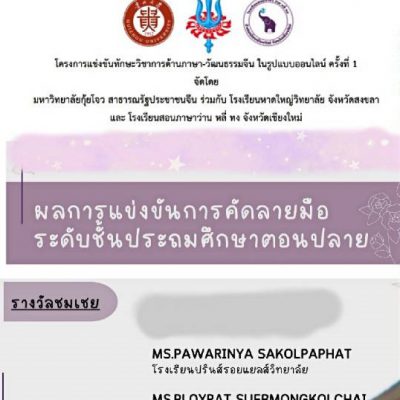 ที่ได้รับรางวัลชมเชย การแข่งขันคัดลายมือภาษาจีน โครงการแข่งขันทักษะวิชาการด้านภาษา-วัฒนธรรมจีน ในรูปแบบออนไลน์ ครั้งที่ 1