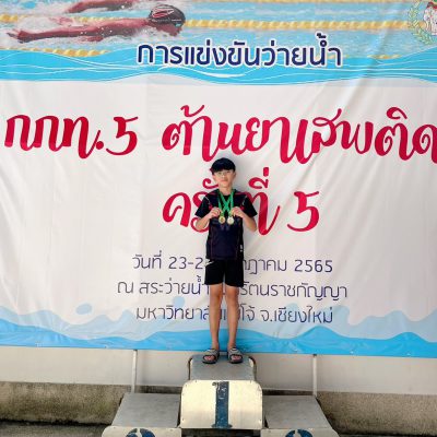 จากการแข่งขันว่ายน้ำ กกท. 5 ต้านยาเสพติดครั้งที่ 5 ระหว่างวันที่ 23-24 กรกฎาคม 2565 ณ สระว่ายน้ำอุบลรัตนราชกัญญา (ม.แม่โจ้)
