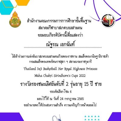 ขอแสดงความยินดีกับ เด็กชายณัฐรณ เอกฉันท์ นักเรียนชั้นมัธยมศึกษาปีที่ 2 ได้รับรางวัลรองชนะเลิศอันดับที่ 2 บาสเกตบอลสามคนถ้วยพระราชทาน สมเด็จพระกนิษฐาธิราชเจ้า กรมสมเด็จพระเทพรัตนราชสุดา ฯ สยามบรมราชกุมารี Thailand 3×3 Basketball Her Royal Highness Princess Maha Chakri sirindhorn’s Cups 2022 โซนภาคเหนือ รุ่น 15 ปี ชาย วันที่ 24 ก.ค.2565 ณ โรงเรียนจักรคำคณาทร จ.ลำพูน
