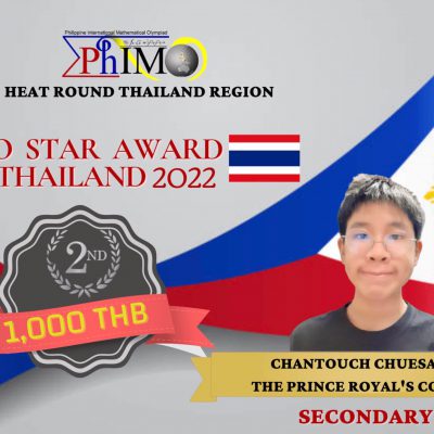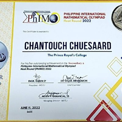 ขอแสดงความยินดีกับเด็กชายฉันทัช เชื้อสะอาด นักเรียนชั้นมัธยมศึกษาปีที่ 2 ได้รับรางวัลเหรียญเงิน Silver Award ในระดับนานาชาติและรางวัลทุนการศึกษา 1,000 บาท กับรายการ การแข่งขันคณิตศาสตร์นานาชาติ 2022 PHILIPPINE International Mathematical Olympiad 2022 : Phi Mo 2022 ประเทศฟิลิปปินส์ ในรอบ Heat Round