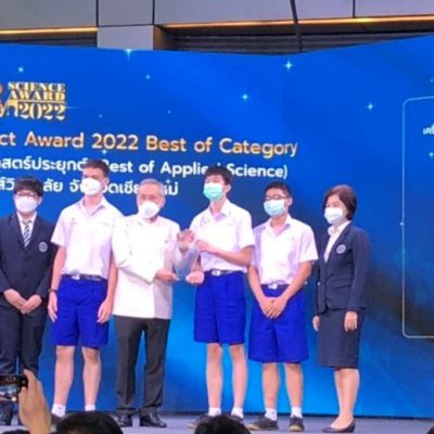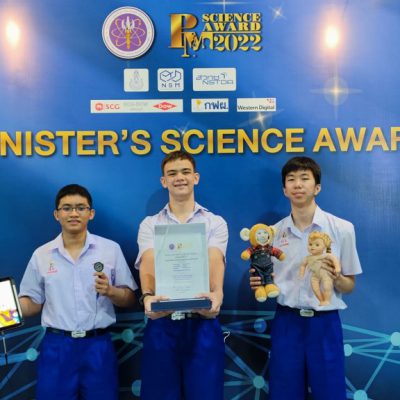 ขอแสดงความยินดีกับนักเรียน Gifted Computer Plus รุ่น GEN.11 นายธนภัทร จรัญวรพรรณ, นายนพวิชญ์ ฉุนรัมย์ และ นายแมท แทนไทย คอช นักเรียนชั้น ม.5/7 ที่ได้รับรางวัลโล่เกียรติยศ และใบประกาศเกียรติคุณ รางวัล Prime Minister’s Science Project Award 2022 – Best of Applied Science (สาขาวิทยาศาสตร์ประยุกต์) พร้อมรับทุนการศึกษาจำนวน 50,000 บาท ในงานมหกรรมวิทยาศาสตร์และเทคโนโลยีแห่งชาติ ประจำปี 2565 เมื่อวันที่ 14 สิงหาคม 2565 ณ เวทีกลาง ศูนย์แสดงสินค้าและการประชุมอิมแพ็ค เมืองทองธานี จังหวัดนนทบุรี จัดการแข่งขันโดย องค์การพิพิธภัณฑ์วิทยาศาสตร์แห่งชาติ (อพวช.) สำนักงานพัฒนาวิทยาศาสตร์และเทคโนโลยีแห่งชาติ (สวทช.) และ สมาคมวิทยาศาสตร์แห่งประเทศไทยในพระบรมราชูปถัมภ์