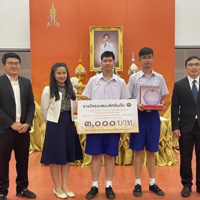 นายชานน สุรพงศพิสิทธิ์ และนายทัพพสาร อิ่มใจ รับรางวัลรองชนะเลิศ อันดับที่ 1  การแข่งขันตอบปัญหากฎหมายระดับมัธยมศึกษา
