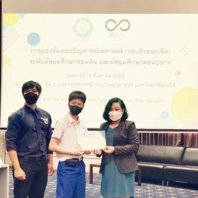ขอแสดงความยินดีกับ นายธนบดี สีห์โสภณ นักเรียนชั้นมัธยมศึกษาปีที่ 3 ได้รับรางวัลรองชนะเลิศอันดับที่ 2 การแข่งขันตอบปัญหาคณิตศาสตร์ ชั้นมัธยมศึกษาตอนต้น ระดับภาคเหนือ ที่ มหาวิทยาลัยแม่โจ้ จ.เชียงใหม่ วันที่ 19 สิงหาคม 2565