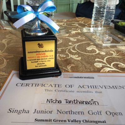 ที่ได้รับรางวัล Winner Class C Girl รายการแข่งขันกอล์ฟ Singha Juniuor Northern Golf Open 2022 (ระดับภาค)