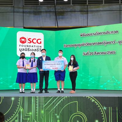 ขอแสดงความยินดีกับนักเรียนชั้นมัธยมศึกษาปีที่ 3 ในการประกวดกิจกรรมชุมนุมนักวิทยาศาสตร์รุ่นเยาว์ – มูลนิธิเอสซีจี ปี 2565 เนื่องในงานมหกรรมสัปดาห์วิทยาศาสตร์แห่งชาติ ประจำปี พ.ศ. 2565ระหว่างวันที่ 18 – 20 สิงหาคม พ.ศ. 2565 ณ Hall 9 ศูนย์แสดงสินค้าและการประชุม อิมแพ็ค เมืองทองธานี