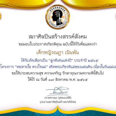 จัดโดย สภาศิลปินสร้างสรรค์สังคม ให้ไว้ ณ วันที่ 17 สิงหาคม 2565