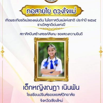 ที่ได้รับรางวัล ลูกดีเด่นแห่งปี ประจำปี 2565 “ทอสายใย ดวงใจแม่” เทิดพระเกียรติแม่ของแผ่นดิน ในโอกาสวันแม่แห่งชาติ ประจำปี 2565