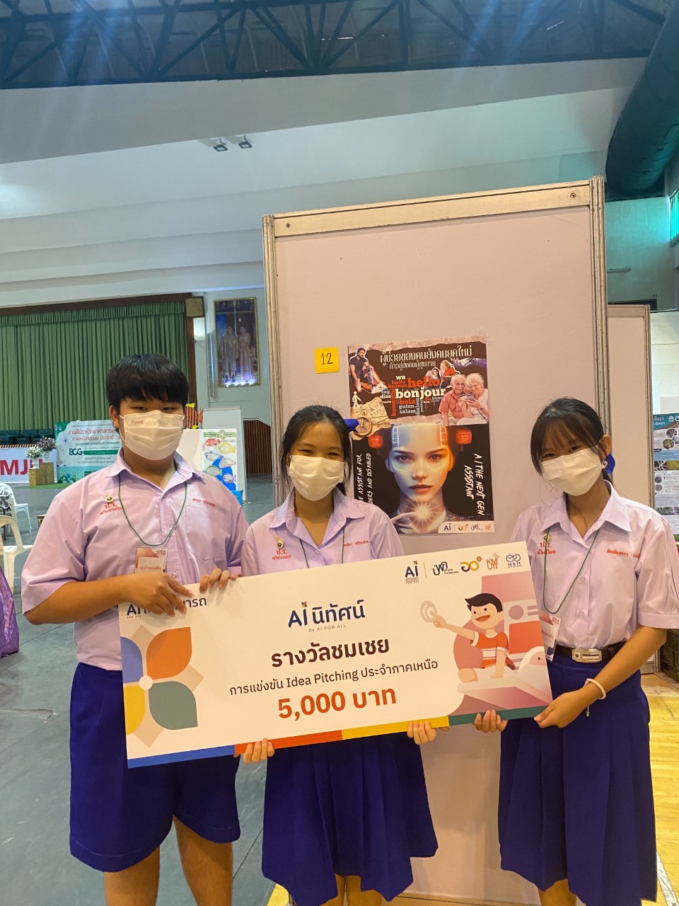 ขอแสดงความยินดีกับ นายเอกบุรุษ ภูริวรางคกูล, นางสาวเขมจิรา ศรีประสาท และนางสาวพิมพ์แพรวา นกน้อย นักเรียนชั้น ม.4/2 ที่ได้รับรางวัลชมเชย ระดับภูมิภาค จากการแข่งขัน Idea Pitching ประจำภาคเหนือ ประจำปี 2565 ในงานสัปดาห์วิทยาศาสตร์แห่งชาติ แข่งขันวันที่ 19 สิงหาคม 2565 ณ ศูนย์กีฬาเฉลิมพระเกียรติ มหาวิทยาลัยแม่โจ้ จัดโดย AI &Robotics for all Thailand