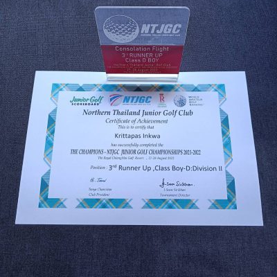 ที่ได้รับรางวัลรองชนะเลิศอันดับ 3 Class BD ดิวิชั่น 2 จากการแข่งขัน The Champions NTJGC Junior Golf Championships 2021/2022