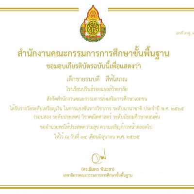 ขอแสดงความยินดีกับ เด็กชายธนบดี สีห์โสภณ นักเรียนชั้นมัธยมศึกษาปีที่ 3 ได้รับรางวัลเหรียญเงิน ในการสอบแข่งขันคณิตศาสตร์ ระดับชั้นมัธยมศึกษาตอนต้น การแข่งขันทางวิชาการ ระดับนานาชาติ ประจำปี พ.ศ.2565 รอบสอง ระดับประเทศ โดยสำนักงานคณะกรรมการการศึกษาขั้นพื้นฐาน (สพฐ) สถานที่แข่งขันจัดที่ รร.อนุบาลเชียงใหม่ เมื่อวันที่ 29 พฤษภาคม พ.ศ.2565