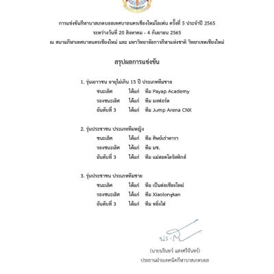 ขอแสดงความยินดีกับ เด็กชายณพธนณัฐ เทวพงศ์พันธ์ นักเรียนชั้นมัธยมศึกษาปีที่ 3 ได้รับรางวัลรองชนะเลิศอันดับ 2 รับถ้วยรางวัล พร้อนเงินสนับสนุน 5,000 บาท ในการแข่งขันกีฬาบาสเกตบอลเทศบาลนครเชียงใหม่โอเพ่น ครั้งที่ 5 ประจำปี 2565 เยาวชนชาย รุ่นอายุ 15 ปี (ทีม Jump Arena CNX) ณ สนามกีฬาเทศบาลนครเชียงใหม่ และ มหาวิทยาลัยการกีฬาแห่งชาติ วิทยาเขตเชียงใหม่ วันที่ 20 สิงหาคม – 4 กันยายน 2565