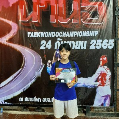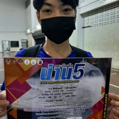 ขอแสดงความยินดีกับ เด็กชายพิชญ์ชยุตม์ เหล็กบุญเพชร ชั้นมัธยมศึกษาปีที่ 2 ได้รับรางวัลชนะเลิศ (เหรียญทอง) การแข่งขันเทควันโด รายการ “น่านกระซิบรัก”TAEKWONDO CHAMPIONSHIP ครั้งที่ 5 รุ่นอายุ 12 – 14 ปี ชาย น้ำหนัก 41-45 kg. วันที่ 24 กันยายน 2565 ณ สนามกีฬา อบจ. จ.น่าน จัดโดยสมาคมการกีฬา จ.น่าน