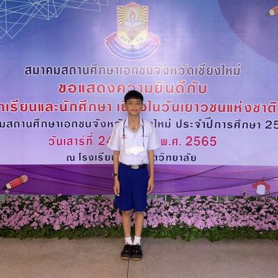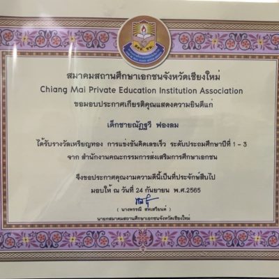 ที่ได้รับเกียรติบัตรชื่นชมยินดี นักเรียนที่มีผลงานชนะเลิศระดับประเทศ ประเภทบุคคล โดย นายวรวิทย์ ชัยสวัสดิ์ (รองผู้ว่าราชการเชียงใหม่)