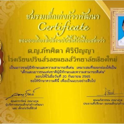 ที่ได้รับรางวัลเกียรติบัตร “เด็กและเยาวชนแห่งชาติผู้มีทักษะและความสามารถดีเด่น” ประจำปี 2565