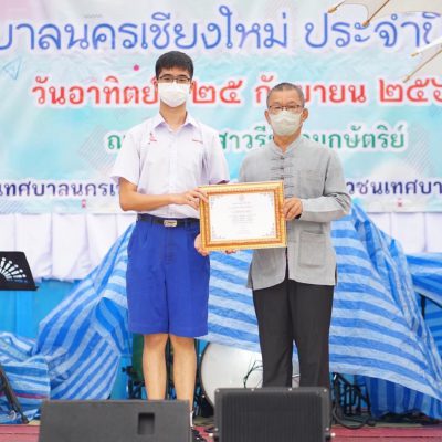 ขอแสดงความยินดีกับ นายทัพพสาร อิ่มใจ นักเรียนชั้น ม.4/10 ที่ได้รับคัดเลือกให้เป็นเยาวชนดีเด่นของเทศบาลนครเชียงใหม่ เนื่องในวันเยาวชนแห่งชาติ ประจำปี 2565 รับเกียรติเกียรติบัตรวันที่ 25 กันยายน 2565 ณ อนุสาวรีย์สามกษัตริย์