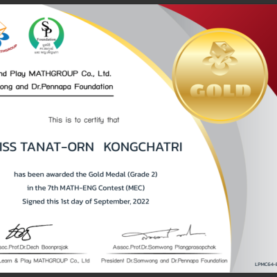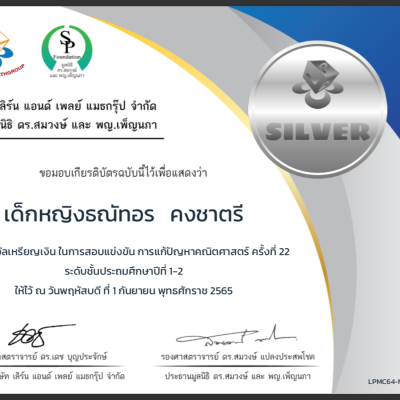 ขอแสดงความยินดีกับเด็กหญิงธณัทอร คงชาตรี ชั้น ป.3 ได้รับ 3 เหรียญรางวัลทางด้านวิชาการ1. รางวัลเหรียญทองในการสอบแข่งขันการแก้ปัญหาวิทยาศาสตร์ครั้งที่ 1ระดับชั้นประถมศึกษาปีที่ 1-2 / 2. รางวัลเหรียญทองในการสอบแข่งขัน MATH-ENG Contest ครั้งที่ 7 ระดับชั้นประถมศึกษาปีที่ 2 / 3. รางวัลเหรียญเงินในการสอบแข่งขันการแก้ปัญหาคณิตศาสตร์ครั้งที่ 22 ระดับชั้นประถมศึกษาปีที่ 1-2 จากรายการสอบแข่งขันทางด้านวิชาการวิชาวิทยาศาสตร์และวิชาคณิตศาสตร์จากรายการระดับชาติ เมื่อวันที่ 19 มิถุนายน 2565 ณ โรงเรียนสารสาสน์วิเทศเชียงใหม่ จัดโดยบริษัทเลิร์น แอนด์ เพลย์ แมธกรุ๊ป และมูลนิธิ ดร.สมวงษ์ และ พญ.เพ็ญนภา ระดับประเทศ