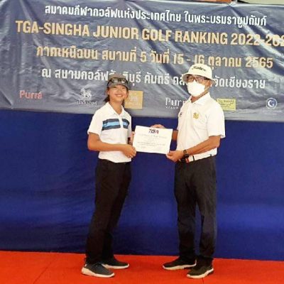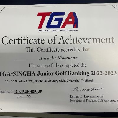 ที่ได้รับรางวัลรองชนะเลิศอันดับดับ 1 TGA – SINGHA Junior Golf Ranking 2022-2023 จัดโดย สมาคมกีฬากอล์ฟแห่งประเทศไทยในพระบรมราชูปถัมภ์ ภาคเหนือตอนบน (การแข่งขันระดับภาค) ระหว่างวันที่15-16 ตุลาคม 2565 ณ สนามกอล์ฟสันติบุรี เชียงราย