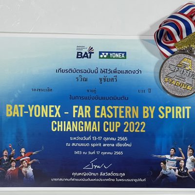 ขอแสดงความยินดีกับเด็กชายรวิณ ชูชัยศรี ชั้น ป. 3/3 เข้าร่วมการแข่งขันรายการ BAT-YONEX FAR EASTERN BY SPIRIT CHIANGMAI CUP 2022 ได้รับรางวัลรองชนะเลิศอันดับ 1 ชายคู่ รุ่นอายุต่ำกว่า 11 ปี ณ สนามแบดมินตัน spirit arena เชียงใหม่ ระหว่างวันที่ 13-17 ตุลาคม 2565 จัดโดยสมาคมแบดมินตันแห่งประเทศไทย ในพระบรมราชูปถัมภ์ ระดับประเทศ