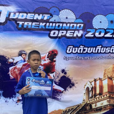 ด.ช.ภรัณยู ชั้น ป.1/13 : เหรียญเงิน การที่แข่งขัน : การแข่งขันกีฬาเทควันโด รายการ “STUDENT TAEKWONDO OPEN 2022”
