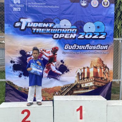 ขอแสดงความยินดีกับเด็กชายภรัณยู อุดมศรี  ชั้น ป.1/13  สังกัดทีม The Legend Taekwondo  เข้าร่วมการแข่งขันกีฬาเทควันโด รายการ “STUDENT TAEKWONDO OPEN 2022”  ได้รับรางวัล รองชนะเลิศอันดับ 1 (เหรียญเงิน) ประเภท ยุวชน ชาย 7-8 ปี รุ่น C น้ำหนักเกิน 23-26 กก. KYORUGI  ณ โรงยิมเนเซียม สนามกีฬาเทศบาลนครเชียงใหม่  เมื่อวันที่ 1 ตุลาคม 2565  จัดโดยสถาบันการพลศึกษาวิทยาเขตเชียงใหม่ ระดับจังหวัด