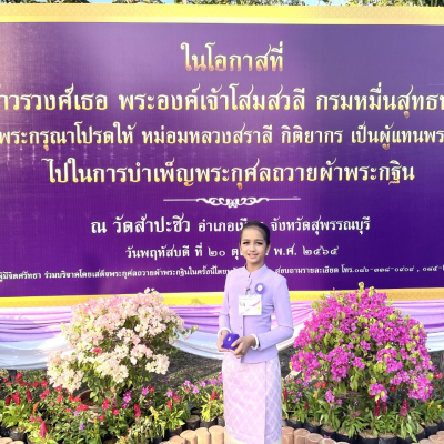 ทรงพระกรุณาโปรดให้ หม่อมหลวงสราลี กิติยากร (พระขนิษฐา) เป็นผู้แทนพระองค์ในการบำเพ็ญพระกุศลถวายผ้าพระกฐิน ประจำปี 2565