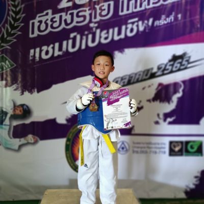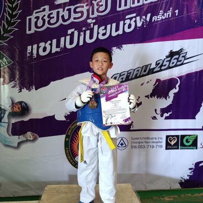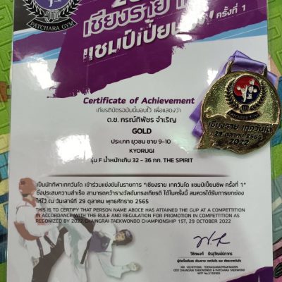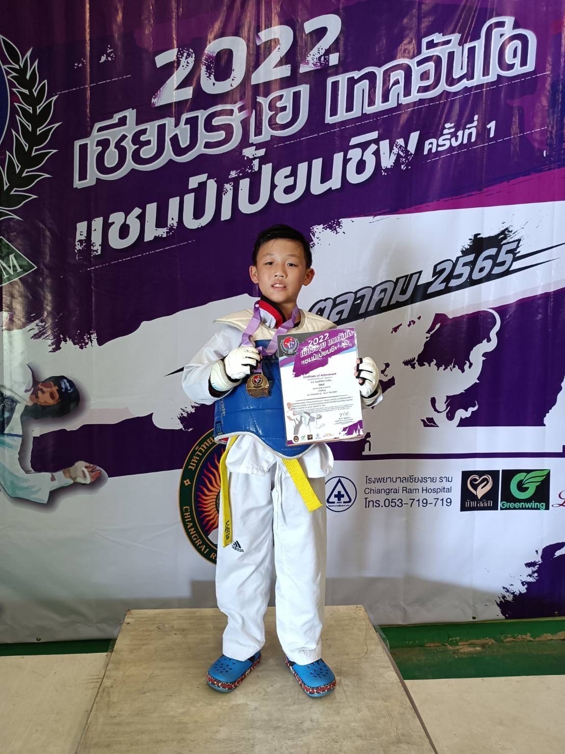 ขอแสดงความยินดีกับเด็กชายกรณ์ทิพัชร จำเริญ ชั้น ป. 3/10 เข้าร่วมแข่งขันเทควันโด รายการเชียงรายเทควันโดแชมป์เปี้ยนชิป ครั้งที่1 ได้รับรางวัล เหรียญทอง ประเภท ยุวชนชาย 9-10 KYURUGI รุ่น F น้ำหนักเกิน 32-36 กก. The Spirit ณ โรงยิมมหาวิทยาลัยราชภัฎเชียงราย เมื่อวันที่ 29 ตุลาคม พ.ศ. 2565 จัดโดย PATCHARA GYM ระดับภาค