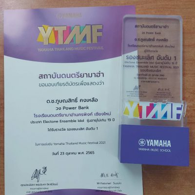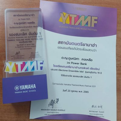 ที่ได้รับรางวัลรองชนะเลิศอันดับ 1 จากการแข่งขัน Yamaha Thailand Music Fastival 2021 (การแข่งขันระดับประเทศ) ประเภทการแข่งขัน Electone Ensemble Idol รุ่นอายุไม่เกิน 19 ปี ชื่อวง Power Bank จัดโดย โรงเรียนดนตรีสยามกลการสถาบันดนตรียามาฮ่า (สำนักงานใหญ่) ร่วมกับ โรงเรียนดนตรียามาฮ่านครพิงค์ เชียงใหม่ เมื่อวันที่ 23 ตุลาคม 2565 ณ ห้องประชุม ดร.ถาวร พรประภา ออดิทอเรียม ชั้น 5 อาคารสยามกลการ กรุงเทพฯ