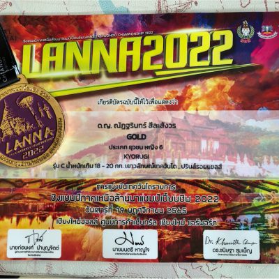 ขอแสดงความยินดีกับเด็กหญิงณัฏฐรินทร์ สีละสังวร อนุบาล 3/1 ได้รับ เหรียญรางวัลชนะเลิศ (เหรียญทอง) จากการแข่งขันเทควันโด ประเภทยุวชนหญิง 6 ปี KYORUGI รุ่น C น้ำหนัก 18 – 20 กก. ในรายการชิงแชมป์ภาคเหนือล้านนาแชมป์เปี้ยนชิพ LANNA TAEWONDO CHAMPIONSHIP 2022 วันเสาร์ที่ 19 พฤศจิกายน 2565 ณ เชียงใหม่ฮอลล์ ศูนย์การค้าเซ็นทรัล เชียงใหม่ แอร์พอร์ต
