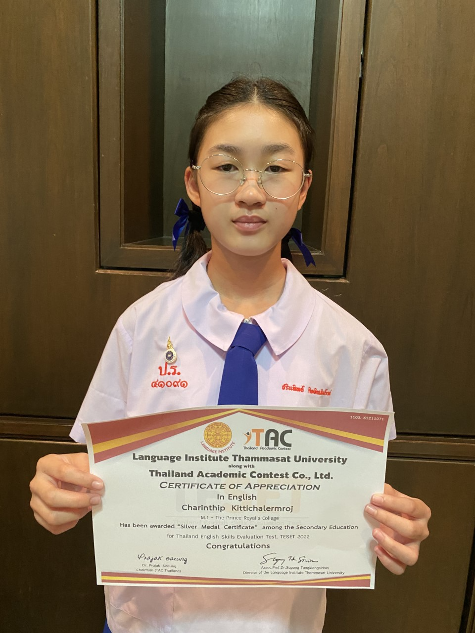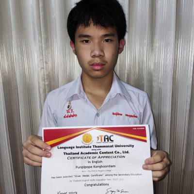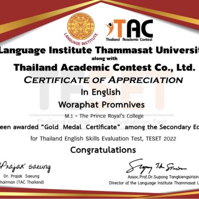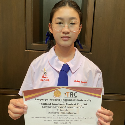 ขอแสดงความยินดีกับ นักเรียนชั้นมัธยมศึกษาตอนต้น ในการแข่งขันภาษาอังกฤษระดับประเทศ รายการ Thailand English Skills Evaluation Test (TESET) จัดโดย Language Institute Thammasat University สอบวันที่ 25 กันยายน 2565 ณ โรงเรียนปรินส์รอยแยลส์วิทยาลัย