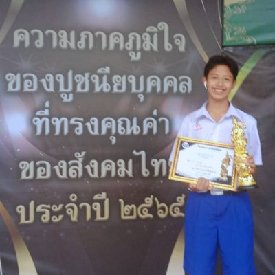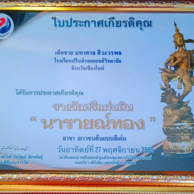 ขอแสดงความยินดีกับ เด็กชายมหาศาล ศิวะวรพล นักเรียนชั้นมัธยมศึกษาปีที่ 1 ได้รับรางวัลศรีแผ่นดินนารายณ์ทองสาขา เยาวชนต้นแบบดีเด่น