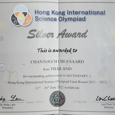 ขอแสดงความยินดีกับเด็กชายฉันทัช เชื้อสะอาด นักเรียนชั้นมัธยมศึกษาปีที่ 2 ได้รับรางวัลเหรียญเงิน Silver Award สนามนานาชาติ HONG KONG International Science Olympiad รอบ Final Round จัดโดย Olympiad Champion Education Center (OCEC) ประเทศฮ่องกง ซึ่งได้รับการรับรองจากกระทรวงศึกษาธิการฮ่องกง ระบบสอบแข่งขันเป็นรูปแบบออนไลน์ โดยมีประเทศเข้าร่วมการแข่งขัน 11 ประเทศ เมื่อวันที่ 26 มิถุนายน 2565